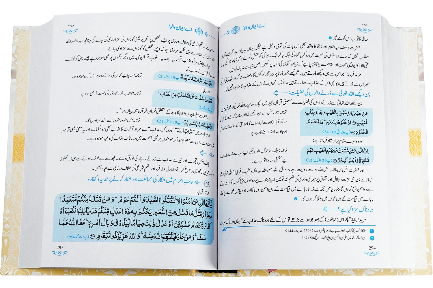 کتاب "اے ایمان والو!" مفسر قرآن ابو الصالح مفتی محمد قاسم قادری صاحب کی تصنیف ہے۔ قرآن مجید، اللہ تعالیٰ کی آخری کتاب ہے جسے انسانیت کی ہدایت اور رہنمائی کے لیے نازل کیا گیا ہے۔ یہ وہ مقدس کتاب ہے جس میں ہر آیت ایک خزانہ ہے، اور جو شخص اس کتاب کو سمجھ کر اس پر عمل کرتا ہے، وہ دنیا اور آخرت میں کامیاب ہو جاتا ہے۔ "اے ایمان والو!" ایک ایسی منفرد اور جامع کتاب ہے جو قرآن مجید کی ان آیات کی تفسیری وضاحت پیش کرتی ہے، جن میں اللہ تعالیٰ نے اہلِ ایمان کو "يَا أَيُّهَا الَّذِينَ آمَنُوا" کے الفاظ سے مخاطب کیا ہے۔ اس کتاب کا مقصد مسلمانوں کو ان احکامات، نصیحتوں، اور ہدایات سے روشناس کرانا ہے، جو اللہ تعالیٰ نے ایمان والوں کے لیے قرآن میں نازل فرمائے۔ قرآن مجید میں اس خطاب (یا ایھا الذین امنوا) کے ساتھ 89 آیات موجود ہیں، جن میں مختلف موضوعات پر ہدایات دی گئی ہیں جیسے عبادات، معاملات، اخلاقیات، اور معاشرتی زندگی کے اصول۔ اس کتاب میں انہی 89 آیات کی جامع اور عام فہم انداز میں تشریح پیش کی گئی ہے تاکہ ہر مسلمان قرآن کی ان تعلیمات کو سمجھ سکے اور اپنی زندگی میں انہیں نافذ کر سکے۔ کتاب کے آغاز میں ایمان کی تعریف اور اس کی اہمیت کو بھی بیان کیا گیا ہے کہ کس طرح ایمان کے انسانی زندگی پر خوشگوار اور مثبت اثرات مرتب ہوتے ہیں ۔ ایک ایمان والا انسان اللہ کی وحدانیت، قدرت، اور عظمت پر ایمان رکھتا ہے، جس سے اس کے دل میں یقین اور سکون پیدا ہوتا ہے۔ یہ یقین اسے دہریت، لامذہبیت، اور کفر و شرک کی جہالت سے بچاتا ہے۔ کتاب "اے ایمان والو!" کی سب سے بڑی خصوصیت یہ ہے کہ اس کتاب میں وہ تمام آیات جن میں اللہ تعالیٰ نے مسلمانوں کو خصوصی ہدایات دی ہیں ایک جگہ مل جاتی ہیں۔ مصنف نے ان آیات کو قرآن مجید کی سورتوں کی ترتیب کے مطابق پیش کیا ہے، تاکہ قاری کو قرآن کے اصل سیاق و سباق کے ساتھ ان آیات کو سمجھنے میں آسانی ہو۔ ہر آیت کے بعد اس کا لفظ بہ لفظ ترجمہ بھی دیا گیا ہے، جس سے قاری آیت کے مفہوم کو بہتر انداز میں سمجھ سکتا ہے۔ اس کے بعد آیت کی تفسیر پیش کی گئی ہے، جس میں "تفسیر صراط الجنان" اور دیگر معتبر تفسیری کتب سے استفادہ کیا گیا ہے۔ مصنف نے موجودہ دور کے فتنوں اور مسلمانوں میں عام ہونے والی غلط فہمیوں اور بد عملیوں کی نشاندہی بھی کی ہے، تاکہ قاری کو دورِ حاضر کے مسائل کا حل بھی مل سکے۔یہ کتاب مسلمانوں کی اصلاح اور انہیں قرآن کے احکام کے مطابق اپنی زندگی گزارنے کی دعوت دیتی ہے۔ ہر آیت کے اختتام پر اس کی مناسبت سے ایک خوبصورت دعا بھی شامل کی گئی ہے۔ یہ کتاب قرآن مجید کو سمجھنے اور اس پر عمل کرنے کے خواہشمند ہر مسلمان کے لیے ایک قیمتی اثاثہ ہے۔