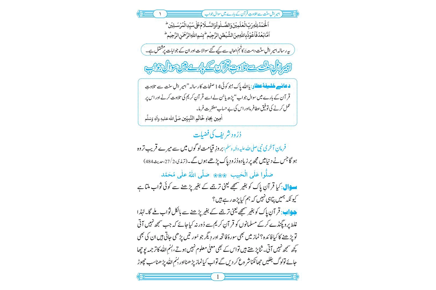 امیرِ اہلِ سنت سے تلاوت قرآن کے بارے میں سوال جواب