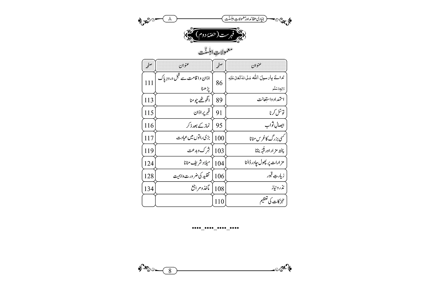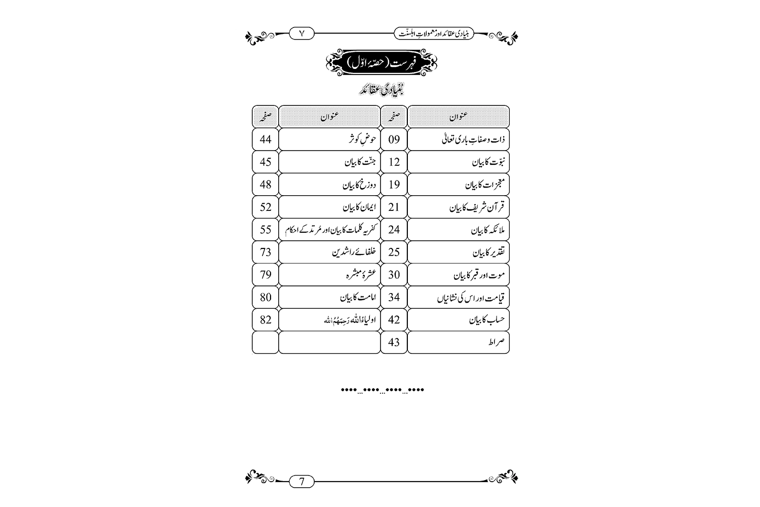 یہ کتاب اسلام کے بنیادی عقائد کے بارے میں ہے جیسا کہ نام سے ہی واضح ہے۔ اس کتاب میں اہلسنت کے بنیادی عقائد کو آسان انداز میں سوال و جواب کی صورت میں بیان کیا گیا ہے۔ ایک عام شخص کے لئے بنیادی عقائد سمجھنے میں یہ کتاب بے حد مفید ہے۔ اس کتاب کے پہلے حصے میں ضروریات دین و ضروریات اہلسنت سے متعلق عقائد بیان کیے گئے ہیں یعنی ذات و صفات باری تعالی، نبوت، قرآن، ملائکہ، معجزات، تقدیر، موت، قبر، حشر، جنت وجہنم کا تصور، کفریہ کلمات ، مرتد کے احکام، صحابہ اور اولیاء اللہ وغیرہ ۔جبکہ کتاب کا دوسرا حصہ معمولات اہلسنت پر مشتمل ہے جس میں استمداد و استعانت، توسل ، ایصال ثواب زیارت قبور، نذر و نیاز، میلاد شریف اور تقلید وغیرہ کی وضاحت کی گئی ہے ۔ اس کتاب میں عقائد کو اہلسنت کے جید و معتبر علماء کی کتب سے لے کر سہل انداز میں بیان کیا گیا ہے ۔ دلائل میں مشکل ابحاث کو ذکر نہیں کیا گیا۔ ایسا طالب جو عقیدے کے بنیادی مسائل پڑھنا اور سمجھنا چاہتا ہے اس کے لئے یہ کتاب بے حد مفید ہے۔ اس کتاب کے مطالعہ سے قاری دینِ اسلام کے بنیادی عقائد اور معمولات اہلسنت جو کہ مستحسن اور باعثِ خیر و برکت ہیں ان سے بہت اچھے انداز سے آگاہ ہوجائے گا ۔