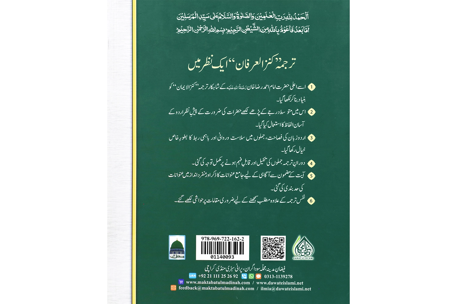قرآن پاک کے نزول کا مقصد ہدایت کاحصول ہے جو قرآن پاک سمجھ کرہی ممکن ہے۔ قرآن پاک کو آسان انداز میں سمجھنے کے لیے مکتبۃ المدینہ نے شائع کیا ہے ترجمہ "کنز العرفان "۔اس کے مترجم شیخ الحدیث مفتی محمد قاسم قادری عطاری صاحب ہے۔ اس کتاب کنز العرفان کا مکمل نام ’’ کنز العرفان فی ترجمۃ القرآن مع حاشیہ: افہام القرآن ‘‘ہے۔ اس کا ترجمہ اعلی حضرت امام احمد رضا خان علیہ الرحمہ کے ترجمے" کنزالایمان" کو بنیاد بنا کر لکھا گیا ہے۔ ترجمۂ کنزُ الایمان اُردو کے تمام تراجِم پر فوقیت رکھتا ہے۔اور یہ کہا جا سکتا ہے کہ ترجمۂ کنز العرفان اس ترجمے کا ایک آسان ورژن ہے۔ اس ترجمے کی مزید چند خصوصیات درج ذیل ہے: • اس ترجمے میں آسان الفاظ کا استعمال کیا گیا ہے۔ • ترجمے کو سمجھنے کے لیے کچھ مقامات پر بریکٹ میں الفاظ کا اضافہ بھی کیا گیا ہے ۔ • تمام قرآنی آیات پر عنوان لگا دیے گئے ہیں اور انہیں مختلف رنگوں سے ہائی لائٹ بھی کیا گیا ہے۔ • جس آیت کے مضمون کی وضاحت ضروری تھی وہاں نیچے حاشیہ میں مختصر تفسیر کر دی گئی ہے۔ ایک عام قاری کے لیے قرآن سمجھنے کے لیے یہ ترجمہ بہترین ہے اور ہر گھر کی ضرورت بھی ہے