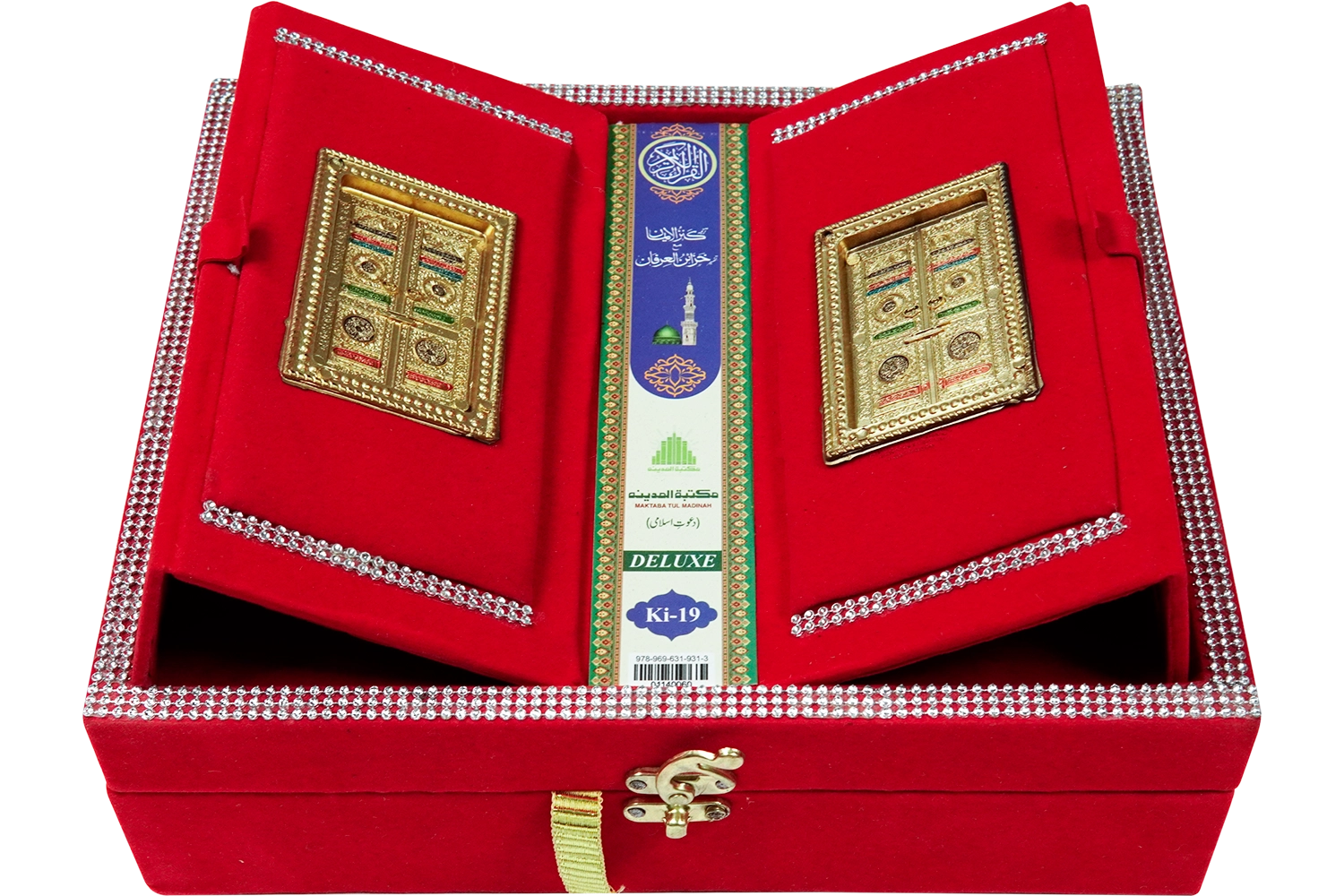 انسان کے لیے سب سے بہترین تحفہ کتاب کا تحفہ ہوتا ہے اور جب وہ کتاب اللہ کی کتاب یعنی قرآن پاک ہو تو پھر اس تحفہ کی اہمیت اور بھی بڑھ جاتی ہے۔ اور جب یہ تحفہ شادی کے موقع پر ایک باپ کی طرف سے اپنی بیٹی کو دیا جا رہا ہے تو پھر ایسے تحفے کا یقینا کوئی مول نہیں ہوتا۔ شادی بیاہ کے موقع پر عموما گھر والے اپنی بیٹی کو رخصت کرتے ہوئے جہیز کے سامان میں بیش بہا قیمتی تحائف دیتے ہیں اور انہی تحائف میں سے ایک تحفہ قرآن پاک بھی ہوتا ہے۔مکتبۃ المدینہ نے جہیز کے اس تحفے کو اور بھی یادگار بنانے کے لیے شائع کیا ہے ایک بہت ہی خوبصورت قرآن پاک ۔ اس قرآن پاک کی اگر خوبصورتی کی بات کریں تو یہ قرآن پاک ایک box میں آتا ہے جس کا کور velvet کا ہے۔اس قرآن پاک کی جلد بھی ویلوٹ کی ہے۔اس قرآن پاک کے بکس کے اوپر اور جلد کے اوپر ایک بہت ہی خوبصورت گولڈن کلر کے دو دروازے کعبۃ اللہ جیسے موجود ہیں۔ بوقتِ ضرورت اس قرآن پاک کا بکس کا اوپر کا حصہ رِحل بھی بن جاتا ہےاور اس کا سائز بھی بہت زیادہ بڑا نہیں ہے۔ اس کا کاغذ بہت اعلی کوالٹی کا ہے اور قرآن پاک کو بند کرنے پر اس کاغذ کی سنہری تہہ بن جاتی ہے۔ یہ قرآن جہاں بہت زیادہ خوبصورت ہے وہیں اس کی ایک خصوصیت یہ بھی ہے کہ اس میں قرآن پاک کا ترجمہ و تفسیر بھی شامل ہے۔ترجمہ کنز الایمان اور تفسیر خزائن العرفان۔ شادی بیاہ یا دیگر مواقع پر تحفہ دینے کے لیے آپ اس قرآن پاک کو مکتبۃ المدینہ کی کسی بھی برانچ سے حاصل کر سکتے ہیں اور آن لائن آرڈر کے ذریعے گھر بیٹھے بھی بآسانی حاصل کر سکتے ہیں۔