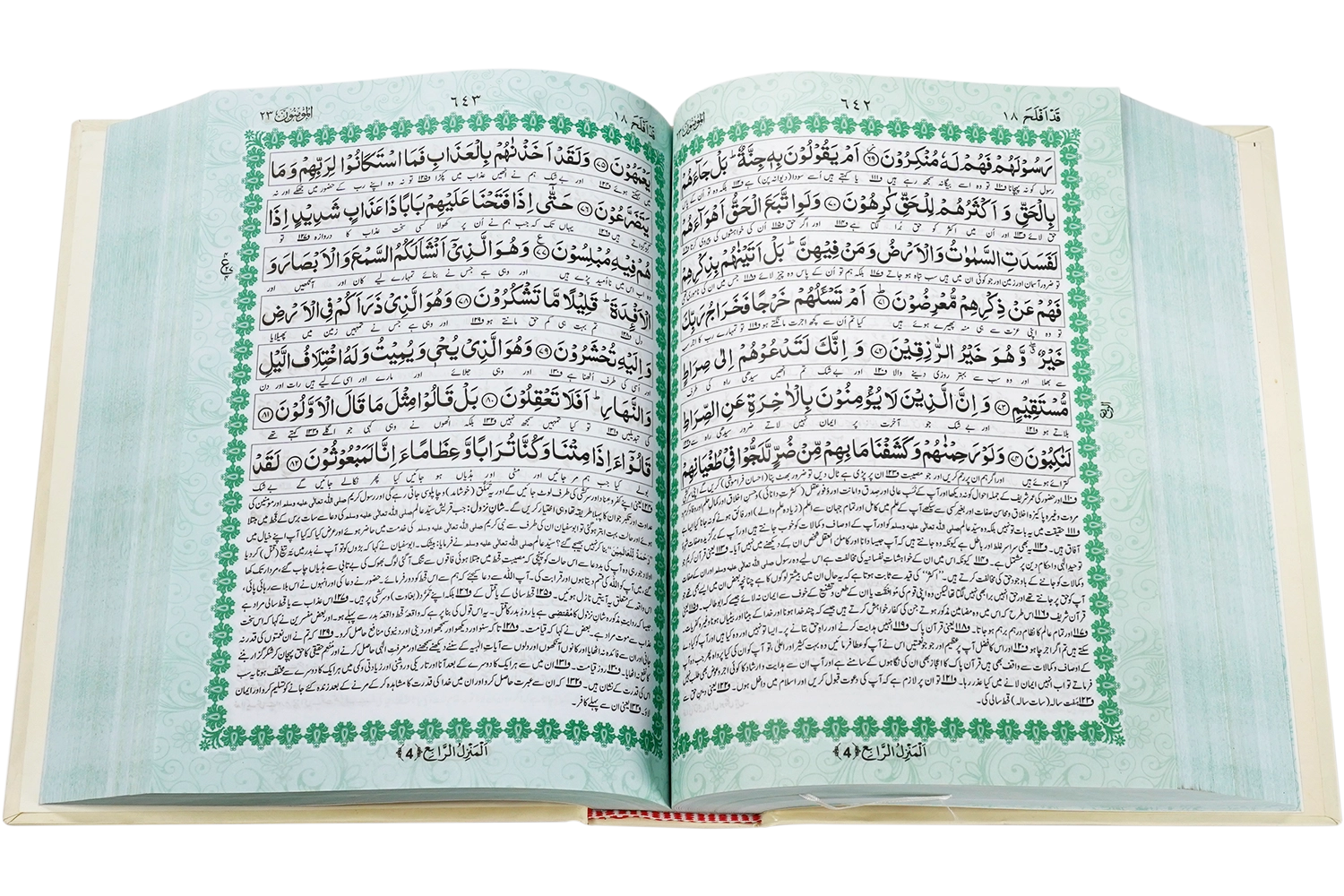 قرآن پاک اللہ پاک کی آخری کتاب ہے۔اس کتاب کے نزول کا مقصد اس سے ہدایت حاصل کرنا اور اللہ تعالی کے دیے گئے احکامات پر عمل کرنا ہے۔ اور یہ تب ہی ممکن ہے جب اس کتاب یعنی قرآن پاک کو ترجمہ و تفسیر کے ذریعے سمجھ کر پڑھا جائے۔ اس اہم ضرورت کو پورا کرتے ہوئے مکتبۃ المدینہ نے شائع کیا ہے ترجمہ قرآن کنز الایمان مع تفسیر خزائن العرفان۔ کنز الایمان امام اہلسنت اعلی حضرت امام احمد رضا خان علیہ الرحمہ کا کیا ہوا ترجمہ قرآن ہے۔اس ترجمہ قرآن کی خصوصیت یہ ہے کہ اس اُردو ترجمہ میں ادب اور عشق کو پیشِ نظر رکھا گیا ہے جسے پڑھنے کے بعد قاری کو جہاں فہمِ قرآن حاصل ہوتا ہے وہیں اس کے دل میں عشق رسول ﷺ بھی سما جاتا ہے۔ اس کے ساتھ ساتھ تفسیر خزائن العرفان صد رالافاضل حضرت علامہ مولانا سیدمحمد نعیم الدین مراد آبادی علیہ الرحمہ کی ہے۔ اس تفسیر قرآن کی خصوصیت یہ ہے کہ یہ مختصر اور جامع ہے۔ یعنی قاری کم وقت میں بآسانی قرآنی آیات کا شانِ نزول اور قرآنی احکامات وغیر اس تفسیر کے ذریعے سمجھ سکتا ہے۔ مکتبۃ المدینہ کے شائع کردہ اس ترجمہ قرآن و تفسیر قرآن کی خصوصیات یہ ہیں کہ : 1. ترجمہ و تفسیر دونوں ایک ہی جلد میں ہیں۔ 2. ہر آیت کا ترجمہ و تفسیر اسی صفحے پر موجود ہے یعنی تفسیر کے لیے الگ سے آخری صفحات میں نہیں جانا پڑتا۔ 3. ترجمہ و تفسیر دونوں کمپیوٹرائز ہیں۔ 4. عمدہ اور دیدہ زیب پرنٹنگ ہے۔ 5. مضبوط بائنڈنگ ہے۔ 6. آخر میں تلاوت کے حوالےسے اہم نکات درج ہیں جن میں مکمل چودہ آیات سجدہ بھی الگ سے تحریر ہیں۔ 7. قرآن پاک کے آخر میں مطالب القرآن کے نام سے ایک مکمل فہرست ہے۔ جس کے ذریعے قاری قرآن پاک کے تمام مضامین کو ایک نظر میں دیکھ سکتا ہےاور ان سے متعلقہ آیات تک بآسانی پہنچ سکتا ہے۔ مثال کے طور پر توحید کے موضوع پر قرآن پاک میں جتنی آیات ہیں ان سب کو ایک جگہ ریفرینس کے ساتھ لکھ دیا گیا ہے۔اس طرح کے کئی موضوعات کے تحت آیات کو ایک جگہ جمع کر دیا گیا ہے۔ قرآن پاک کو سمجھنے اور سمجھانے کے لیے اس ترجمہ اور تفسیر کا مطالعہ بے حد فائدہ مند ہے اور یہ ہر گھر کی ضرورت ہے۔ اس قرآن پاک کو آپ مکتبۃ المدینہ کی کسی بھی برانچ سے حاصل کر سکتے ہیں اور آن لائن آرڈر کے ذریعے گھر بیٹھے بھی بآسانی حاصل کر سکتے ہیں۔