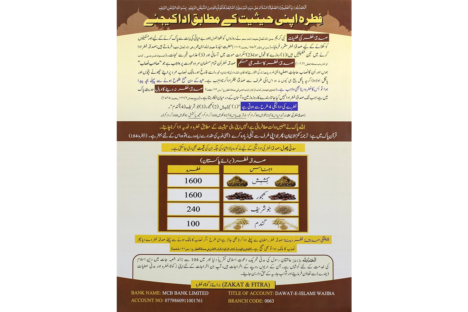 پمفلیٹ - فطرہ اپنی حیثیت کے مطابق ادا کیجئے