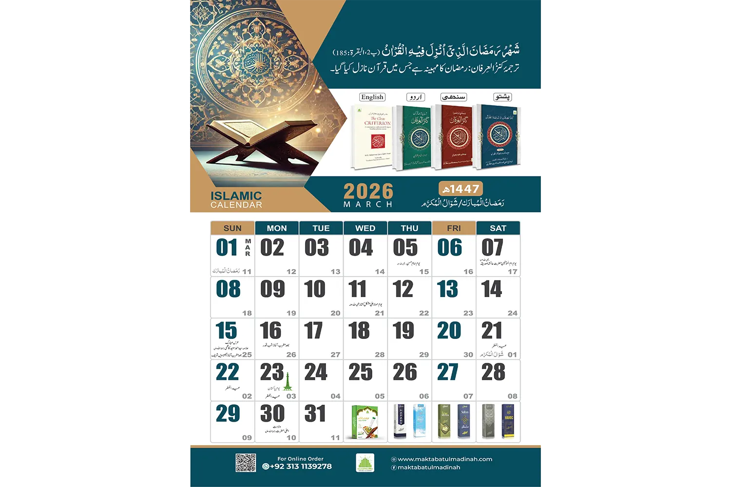 The Madani Calendar 2026, published by Maktaba-tul-Madinah (the publishing department of Dawat-e-Islami), is an essential spiritual companion for every Muslim household. More than just a date tracker, this calendar is designed to keep you connected with Islamic traditions, sacred dates, and daily spiritual reminders throughout the year.